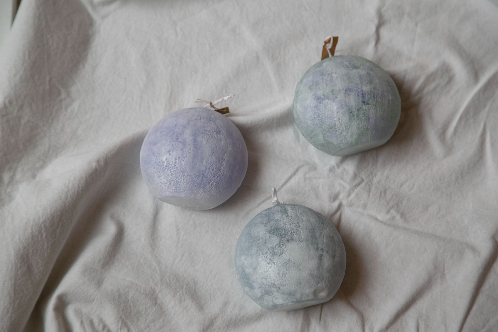 灯していくと満月から新月へ月のように形を変える、時の移ろいを感じられる蝋燭